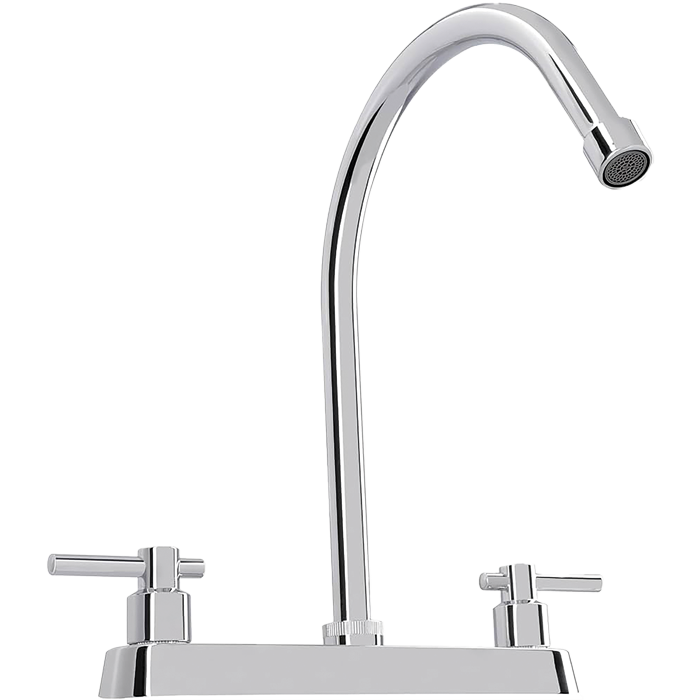 Mezcladora monomando para fregadero con cuello alto (o de ganso) y acabado cromo. Su diseño permite llenar recipientes grandes con facilidad.